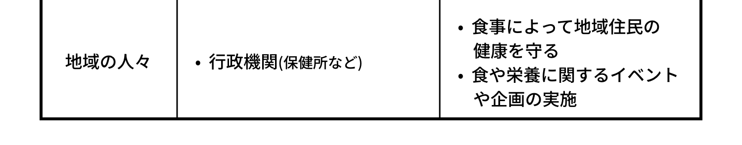 貢献方法:食事による地域住民の健康づくり、イベントや企画の実施