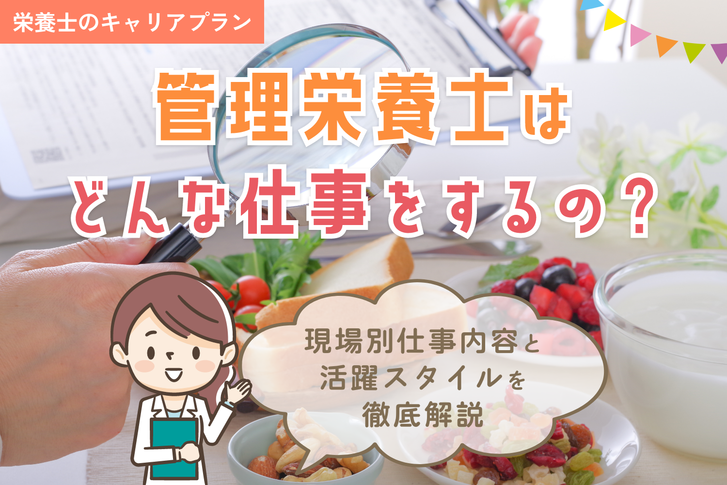 管理栄養士は、健康な人から病気療養中の人まで、一人ひとりの生活を「食」を通じて支える専門職です。病院や学校、企業など活躍の場は幅広く、働き方によって役割も変わります。 ...